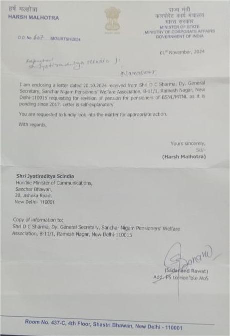 Pension Revision -Hon MoS Corporate Affairs forwarding to Hon MoC 01-11-24