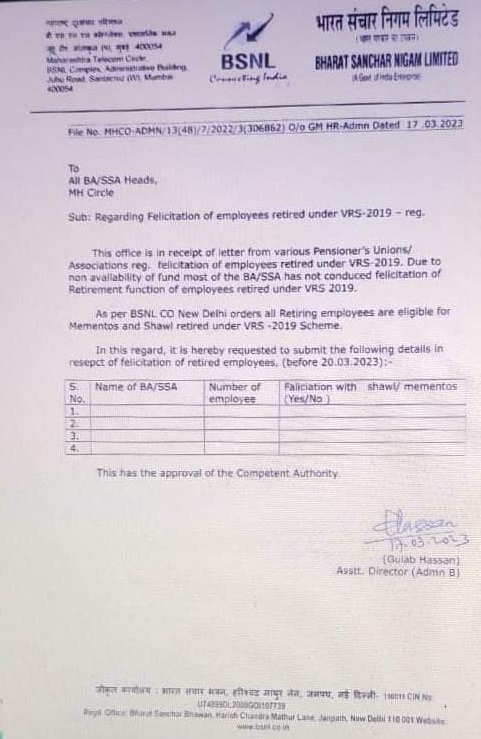 Web portal for BSNL Retirees to Go live from 1st March 2023 - Dir HR writes to CGM ITPC 02-02-23