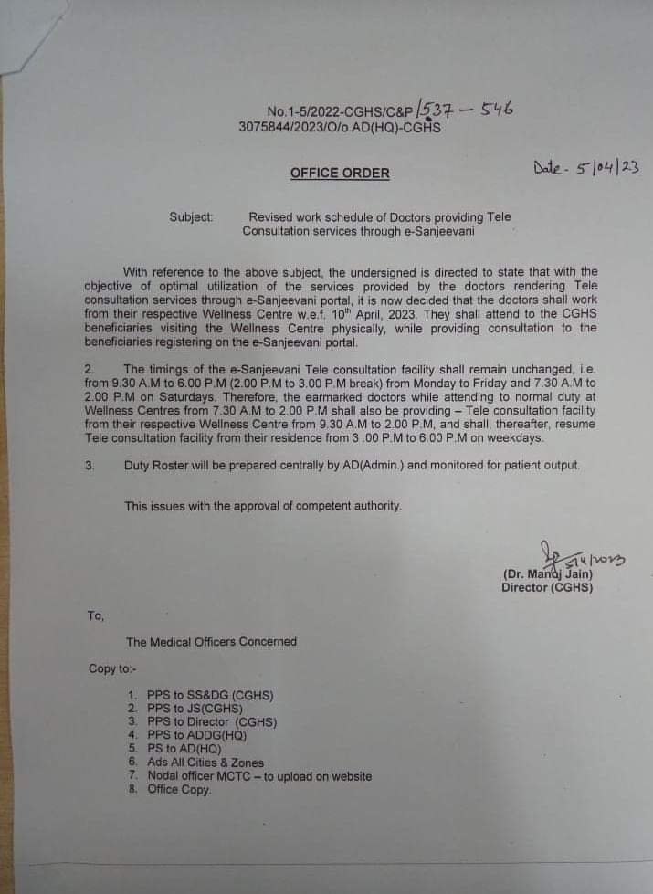 Consultation Services through e-sanjeevani - Revised timimg reg 05-04-236