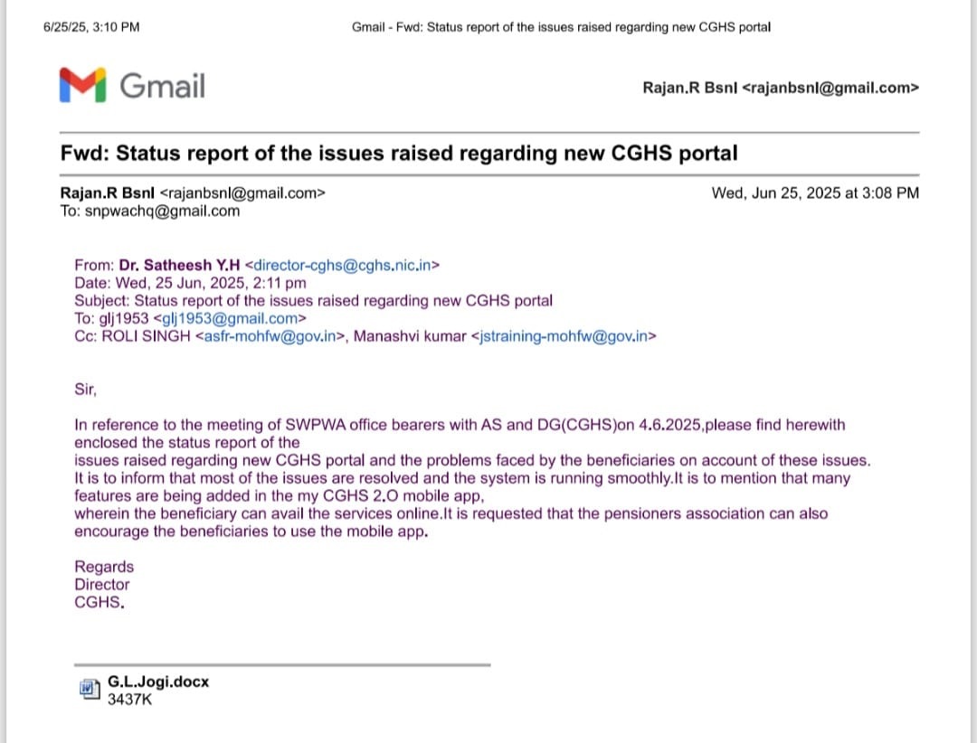 E- mail received by GS SNPWA from Director CGHS 25-06-25