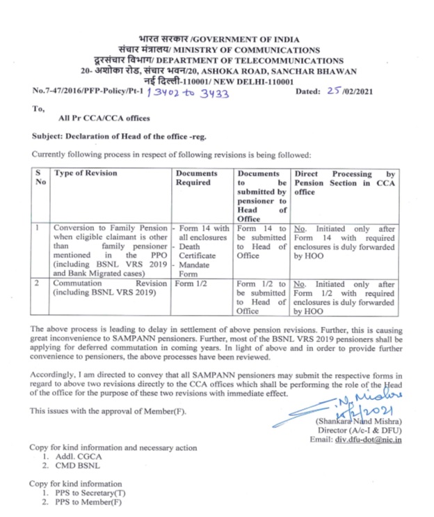 EPF Family Pension revision and Commutation revision - Revised procedure by DoT 25-02-2023