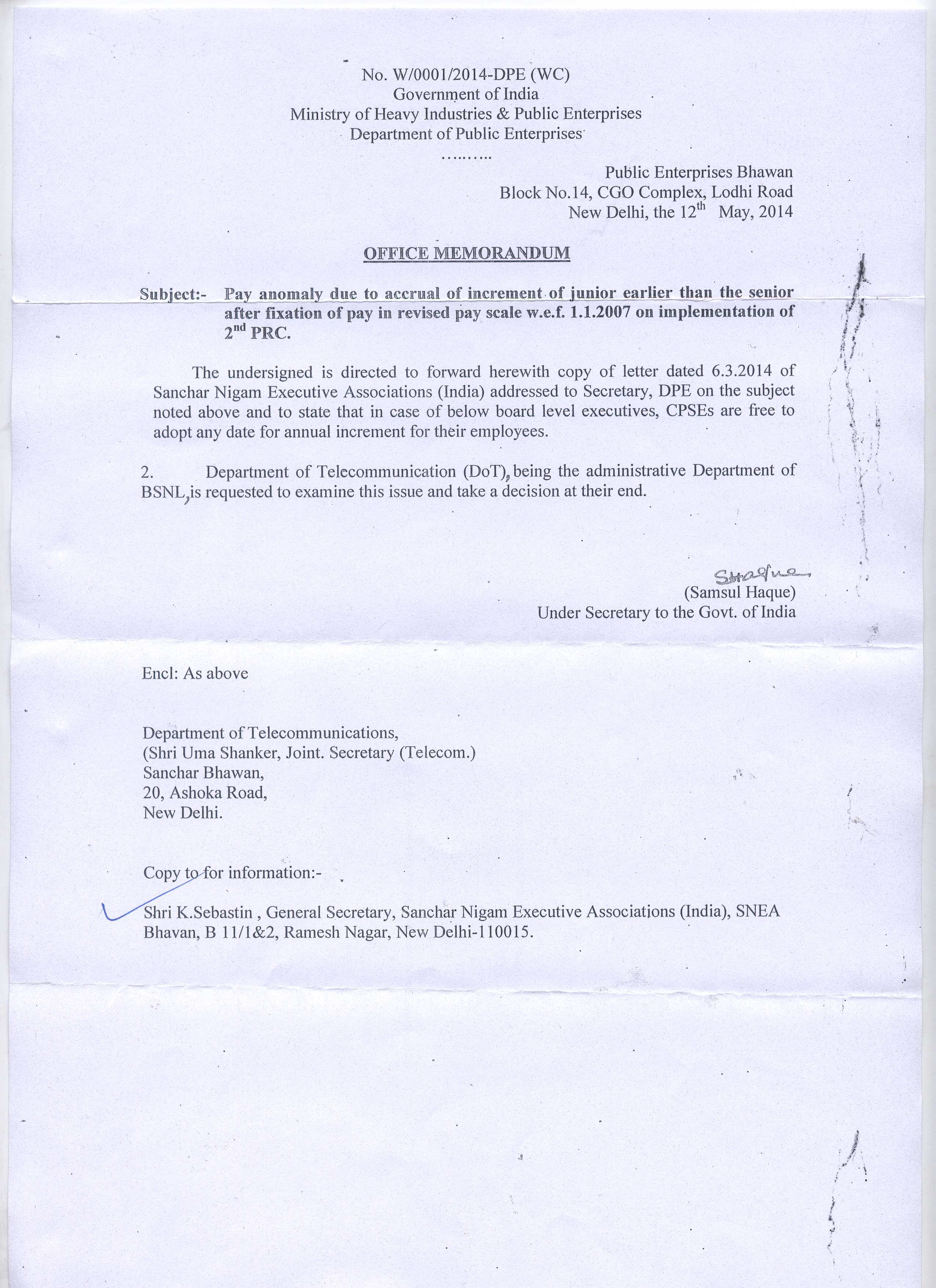Accrual of increment of Junior - 2nd PRC anamoly Clarification 14-06-10